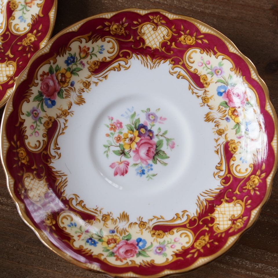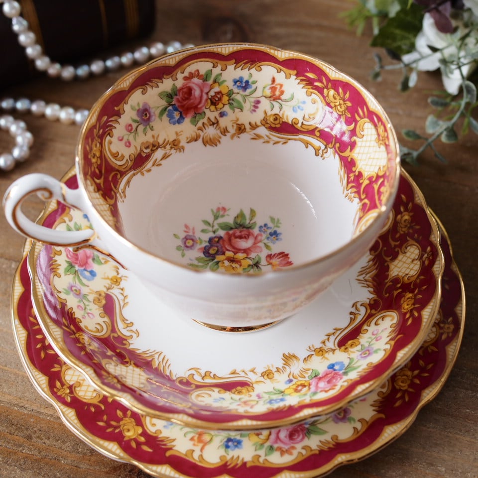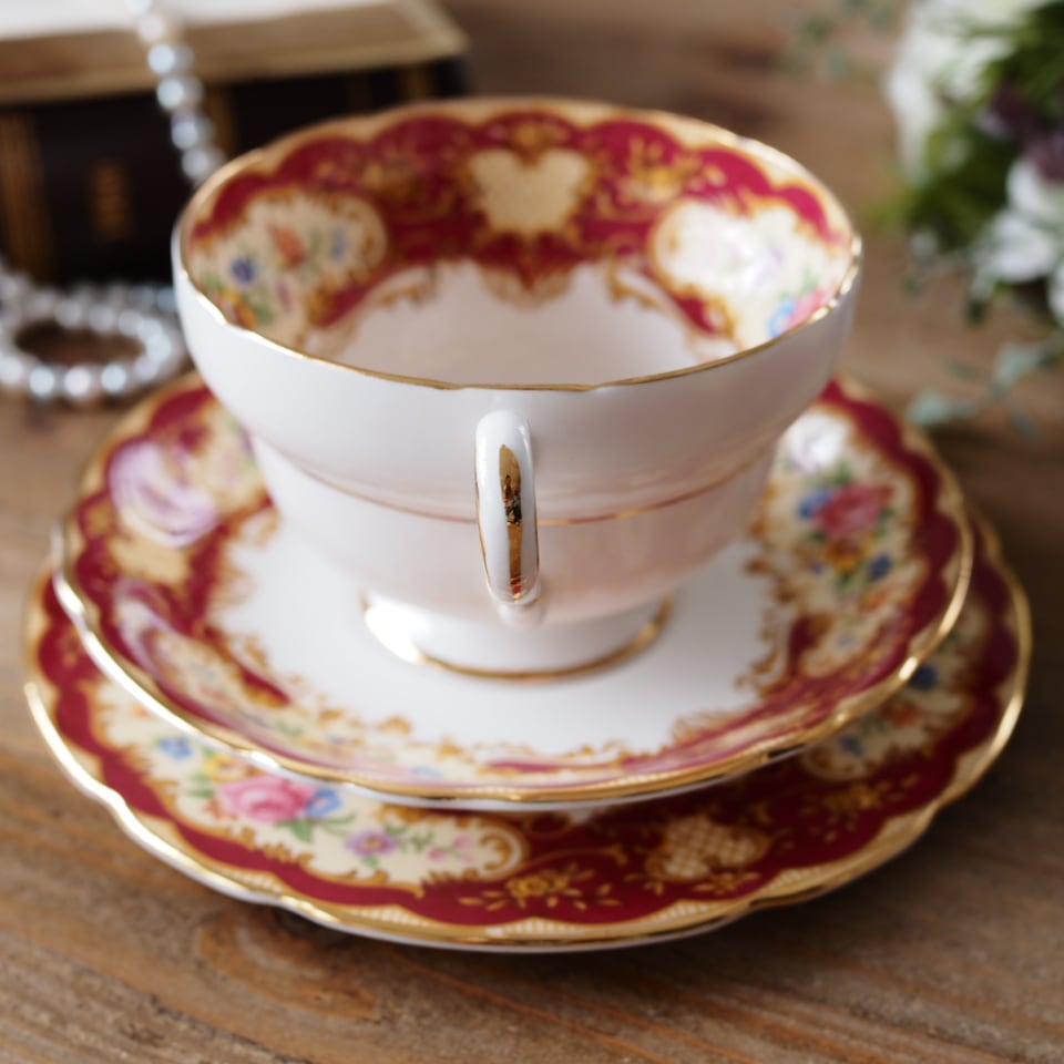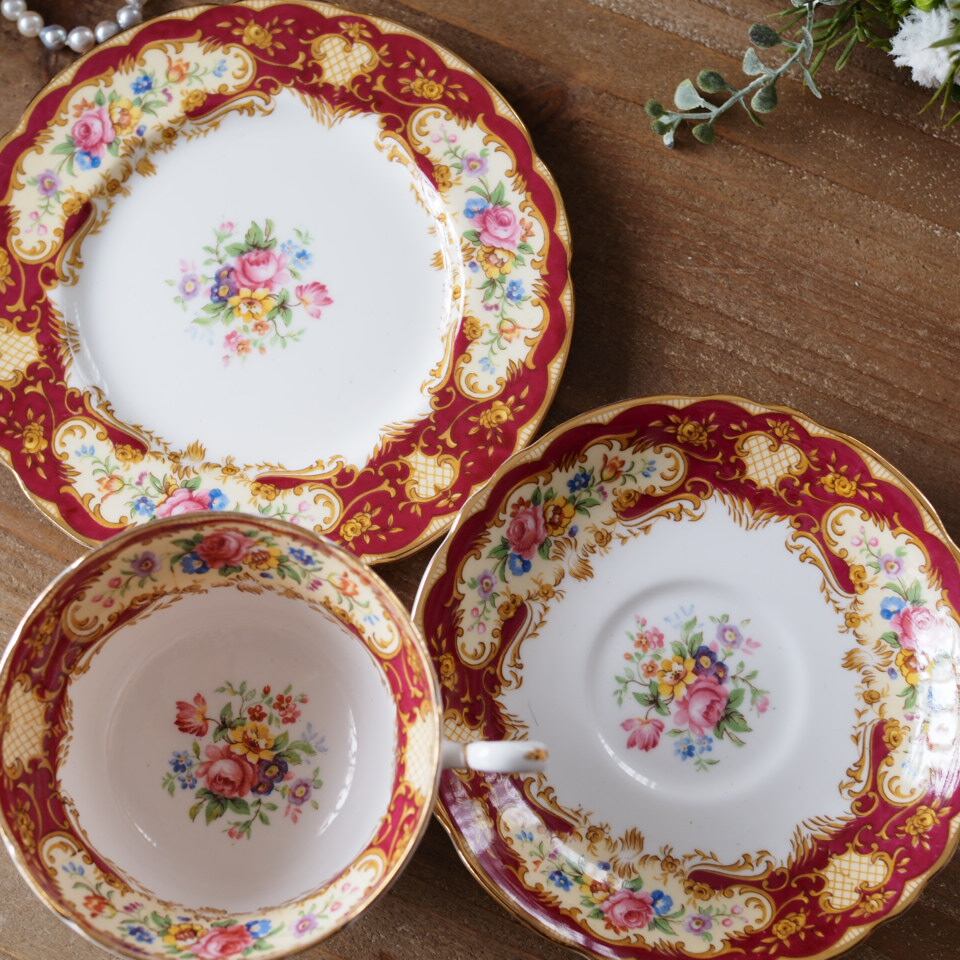 英国パラゴン ポンパドールpompadourレッド トリオ カップ&ソーサー